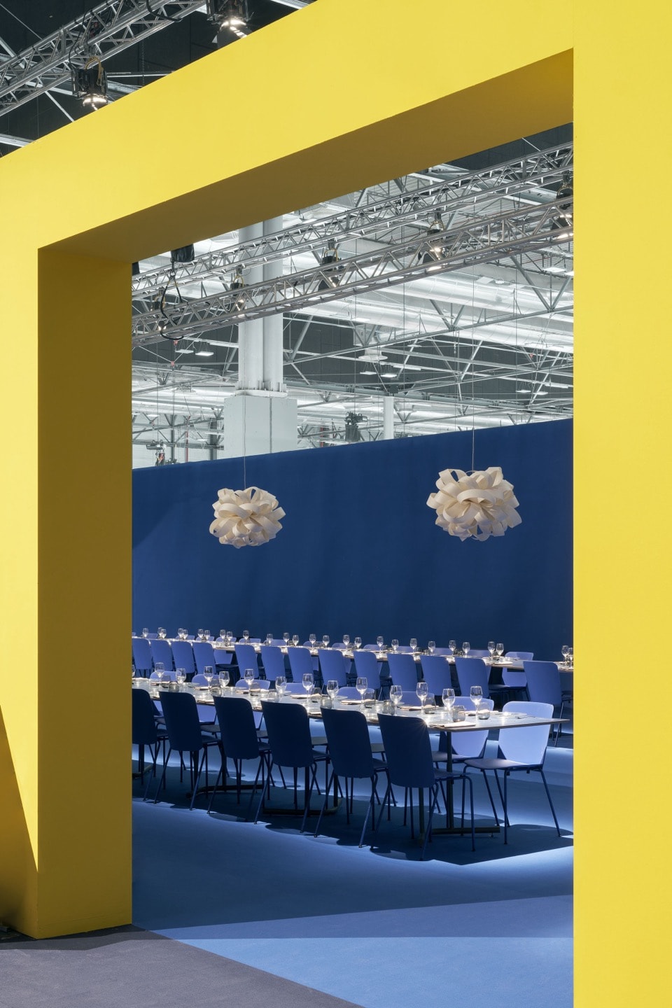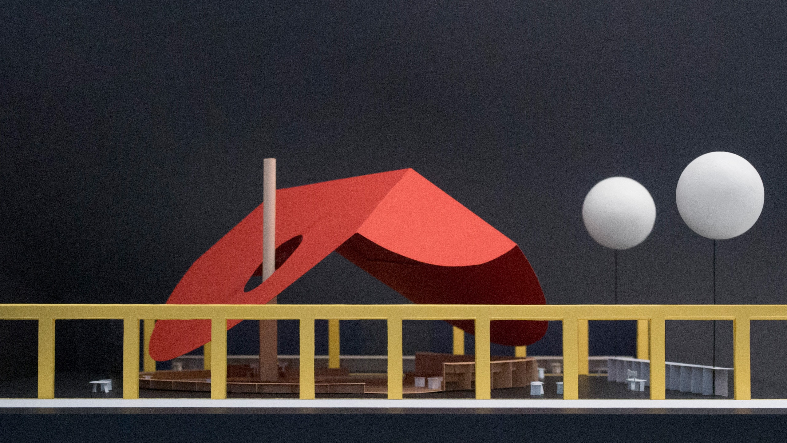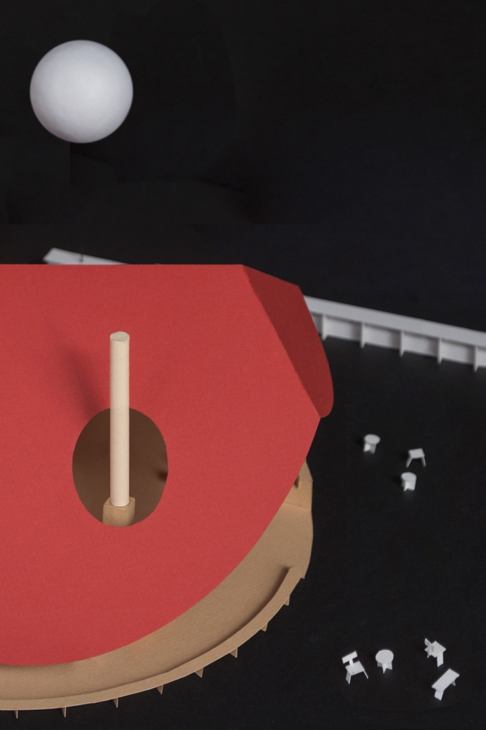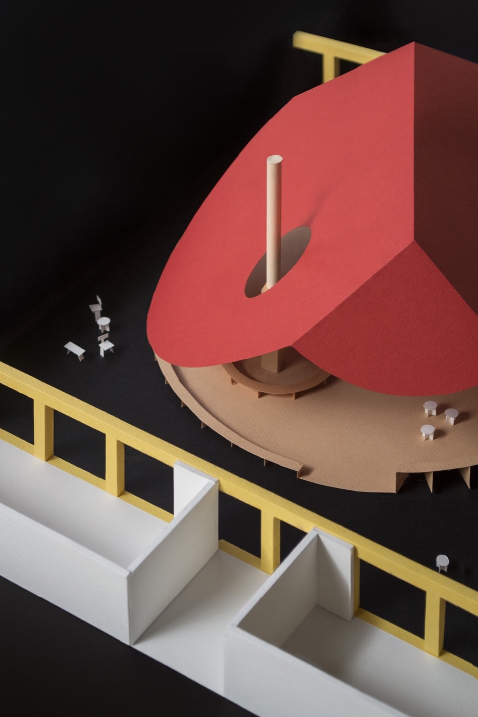 Un espacio que por fin huye de restricciones y se colmata por medio de una serie de dispositivos que combaten el reciente aislamiento al que nuestra sociedad se ha visto sometida. La plaza, la verbena, la carpa, el banco, la barra, la mesa… Todos ellos elementos recuperados de nuestra tradición popular. Y cuyo fin reside en imaginar escenarios donde el transcurrir del tiempo no puede ser entendido sino a través de la celebración y la vida en comunidad.