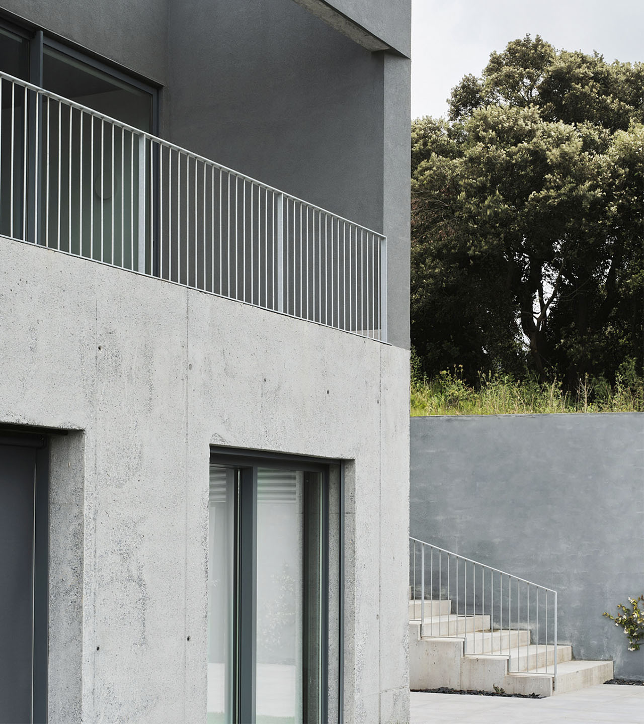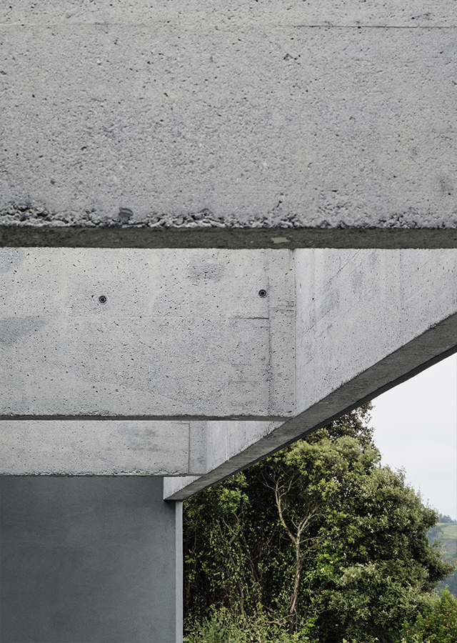 Determinado por el singular enclave del terreno, la primera decisión tiene que ver con el volumen. Se plantean dos cuerpos claramente diferenciados. Una estructura de hormigón conforma un pesado zócalo que alberga la planta baja.