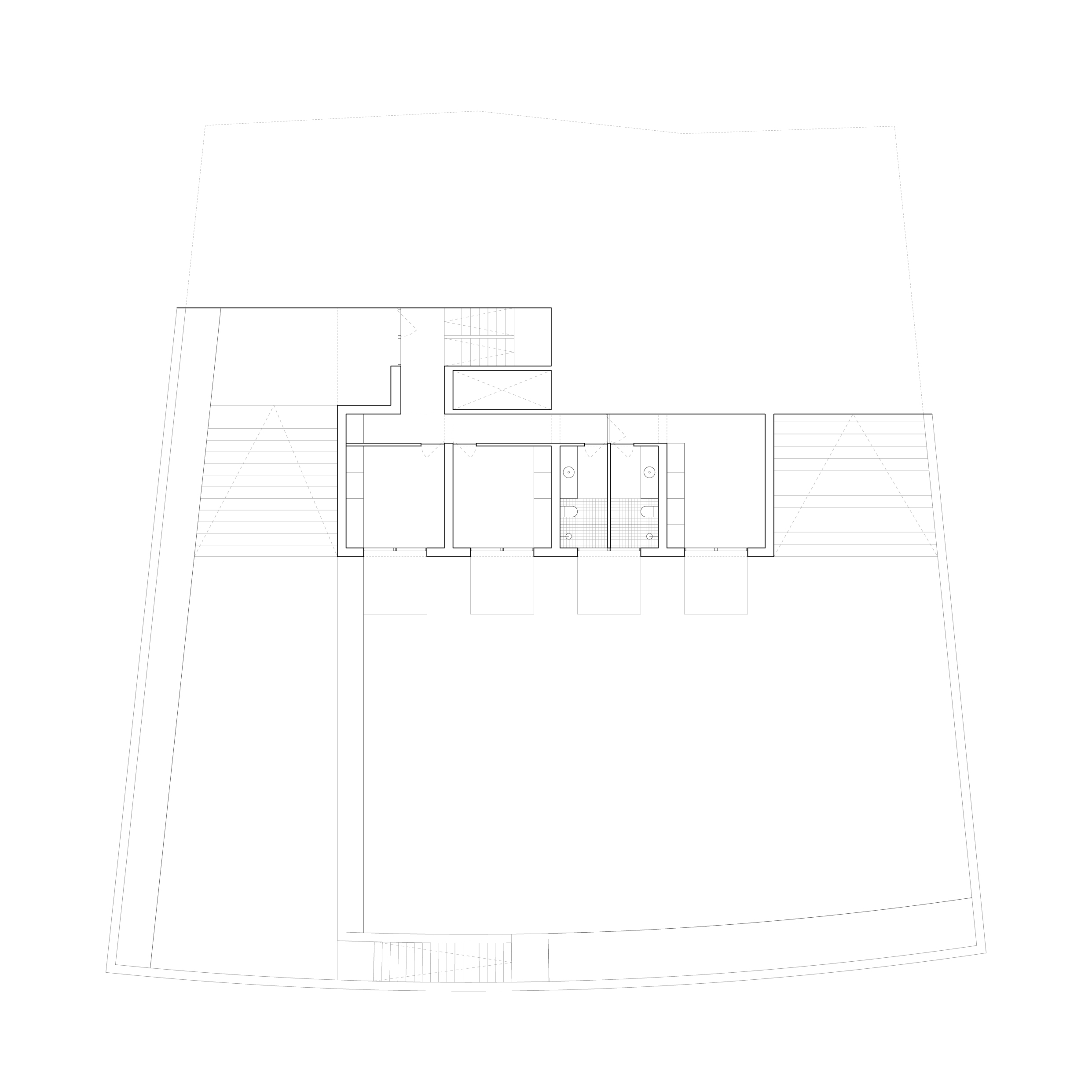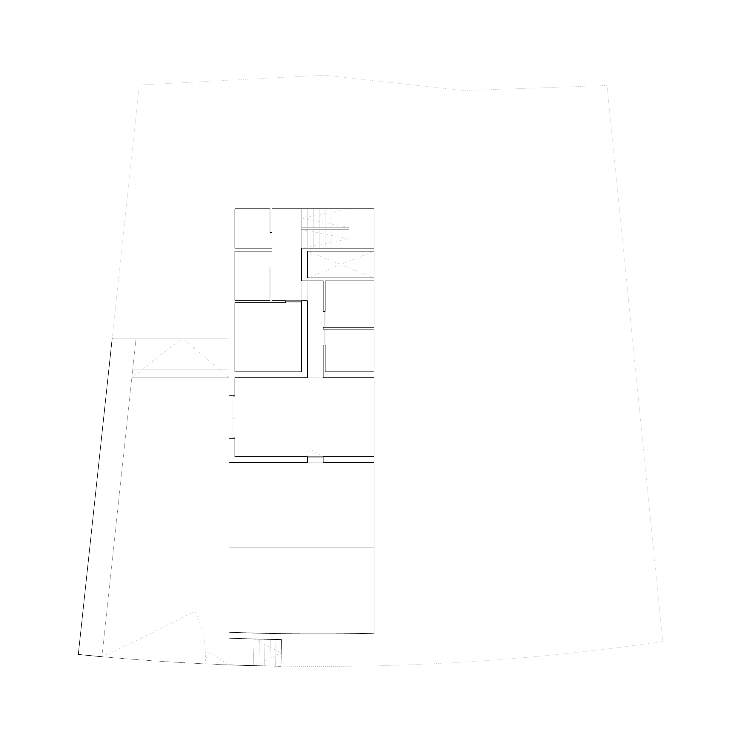 Determinado por el singular enclave del terreno, la primera decisión tiene que ver con el volumen. Se plantean dos cuerpos claramente diferenciados. Una estructura de hormigón conforma un pesado zócalo que alberga la planta baja.