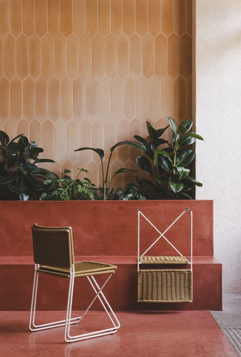 Si bien este proyecto emplea recursos estéticos que permiten entenderlo como continuación del anterior local, se busca crear nuevas señas de identidad que lo hagan único. El uso del color o la geometría de las piezas cerámicas otorgan un aire fresco a la vez que combinan con otros recursos que refuerzan la identidad que la marca refleja en sus sedes.