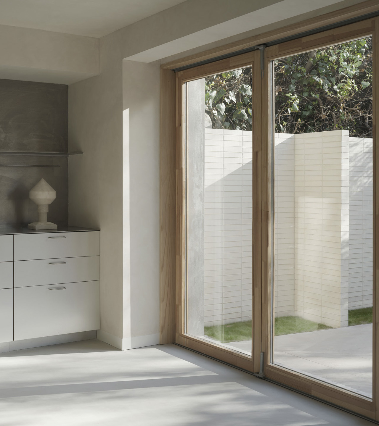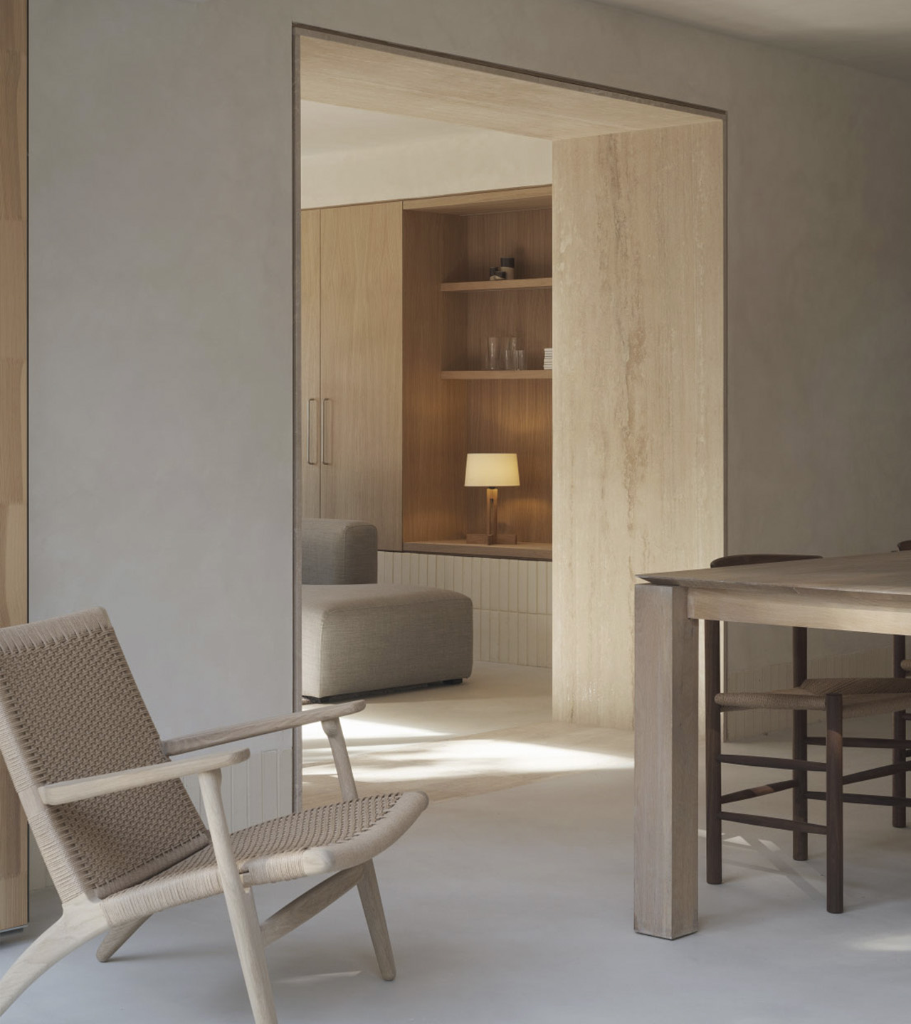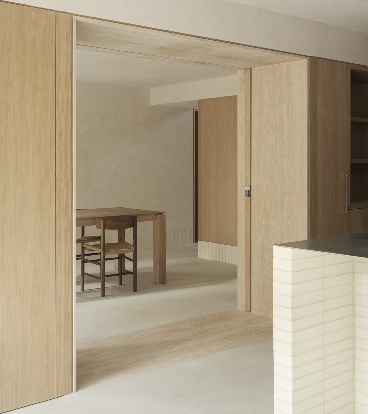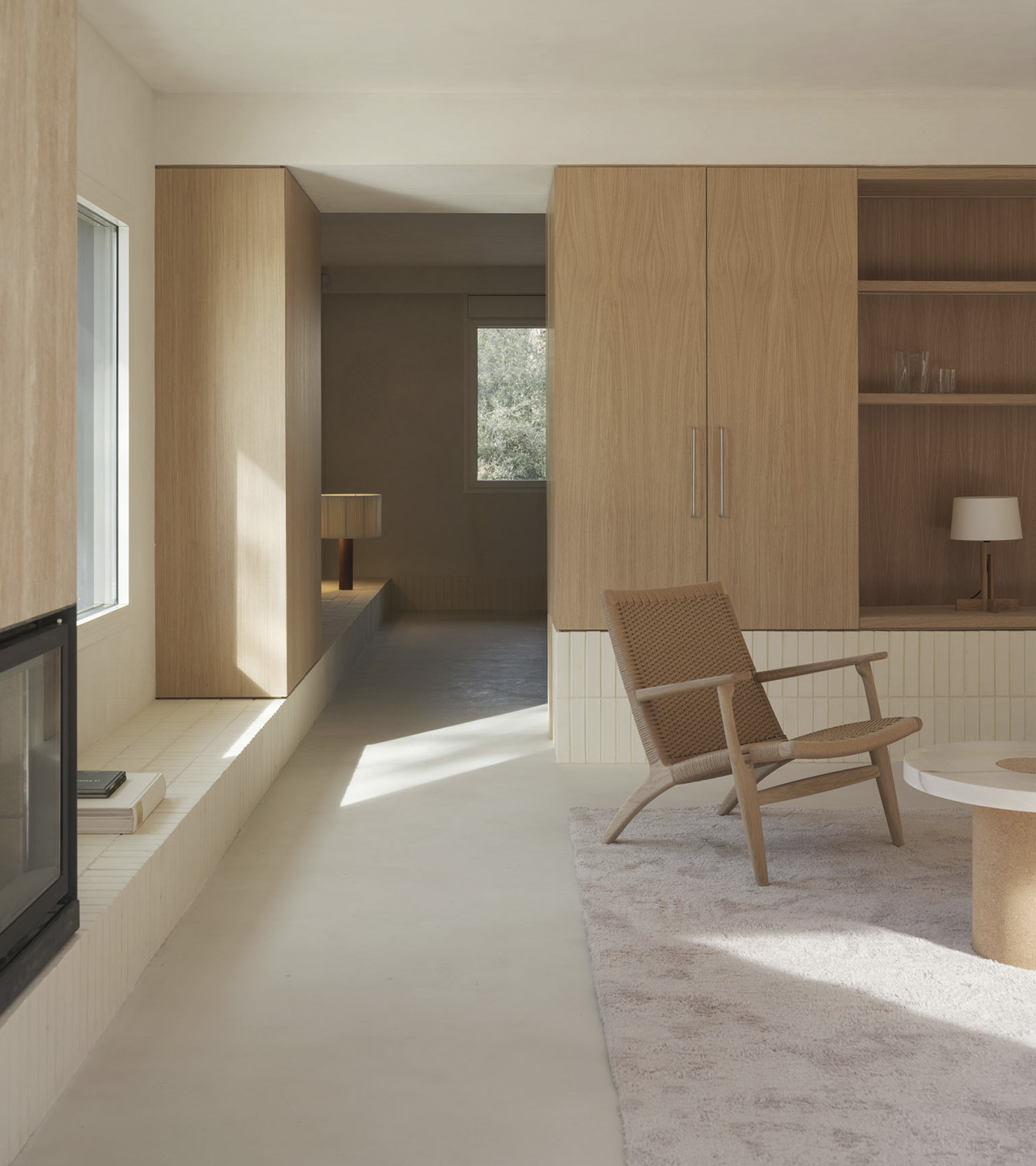 La versatilidad de esta solución material ayuda a construir el contenido y continente de toda la casa, mientras que su expresividad da carácter a cada atmósfera.