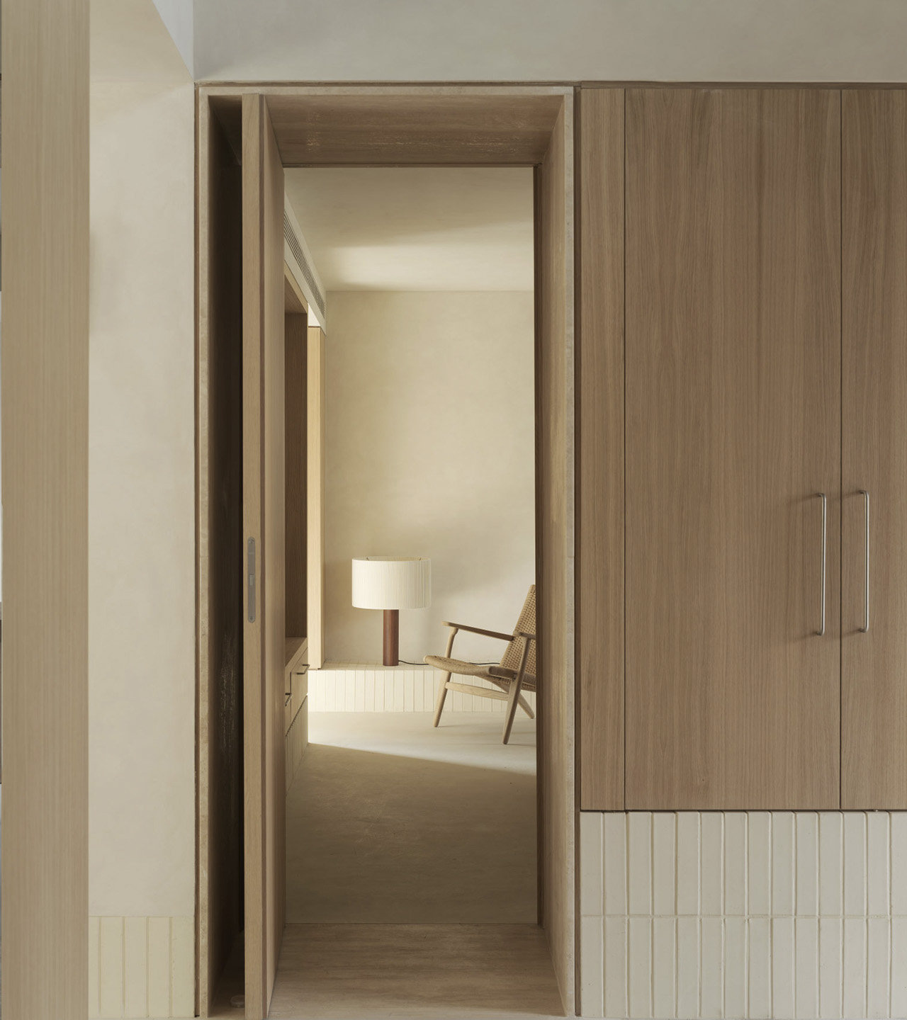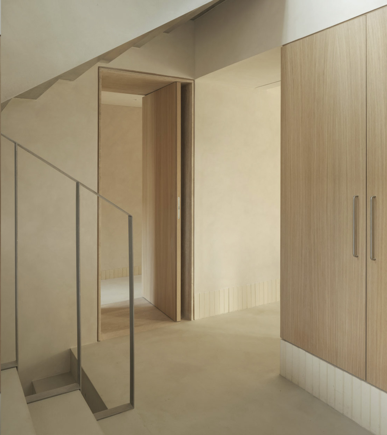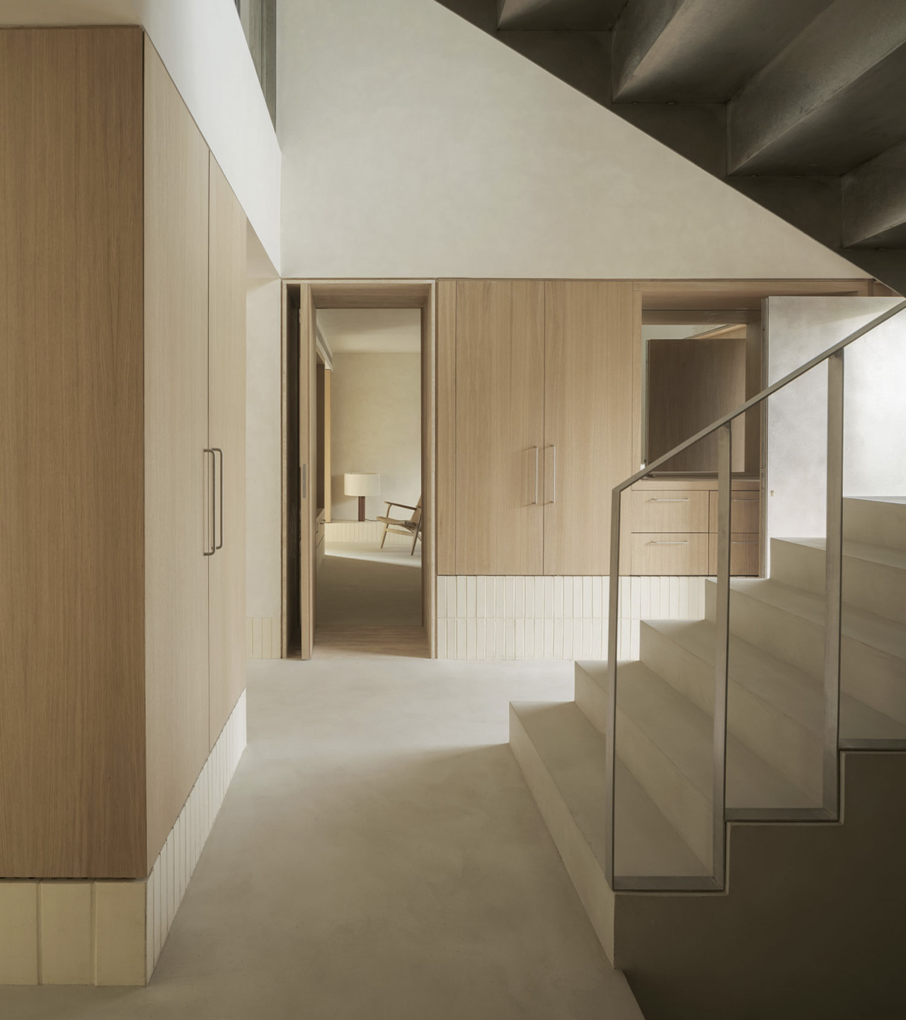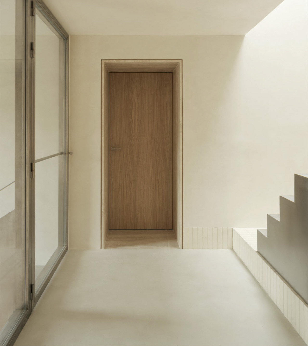La versatilidad de esta solución material ayuda a construir el contenido y continente de toda la casa, mientras que su expresividad da carácter a cada atmósfera.