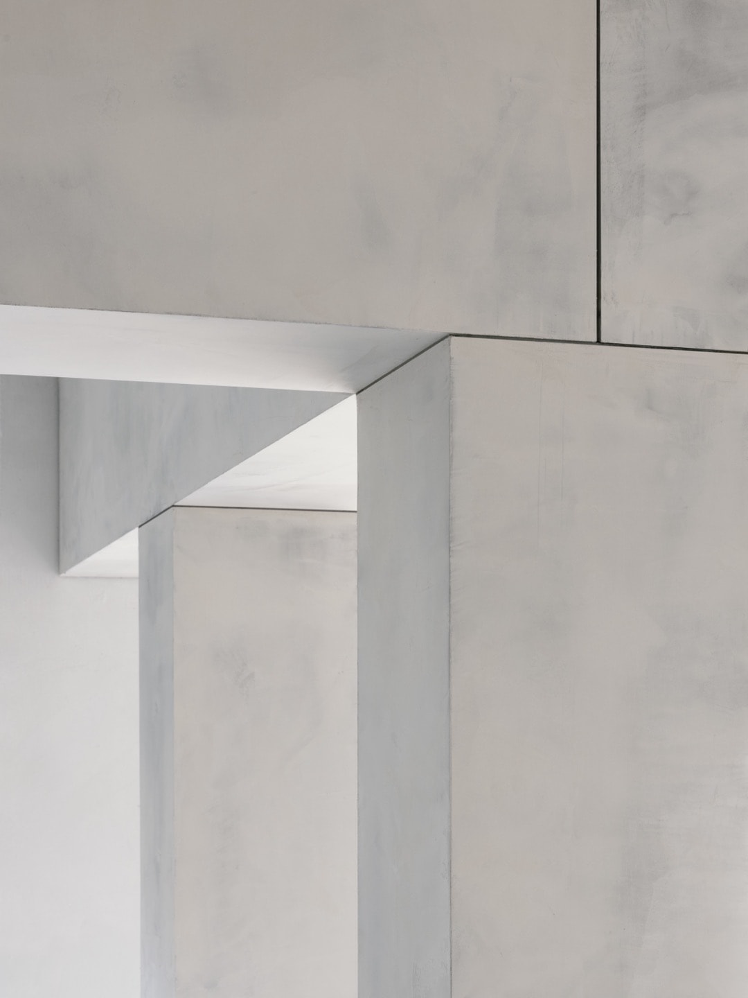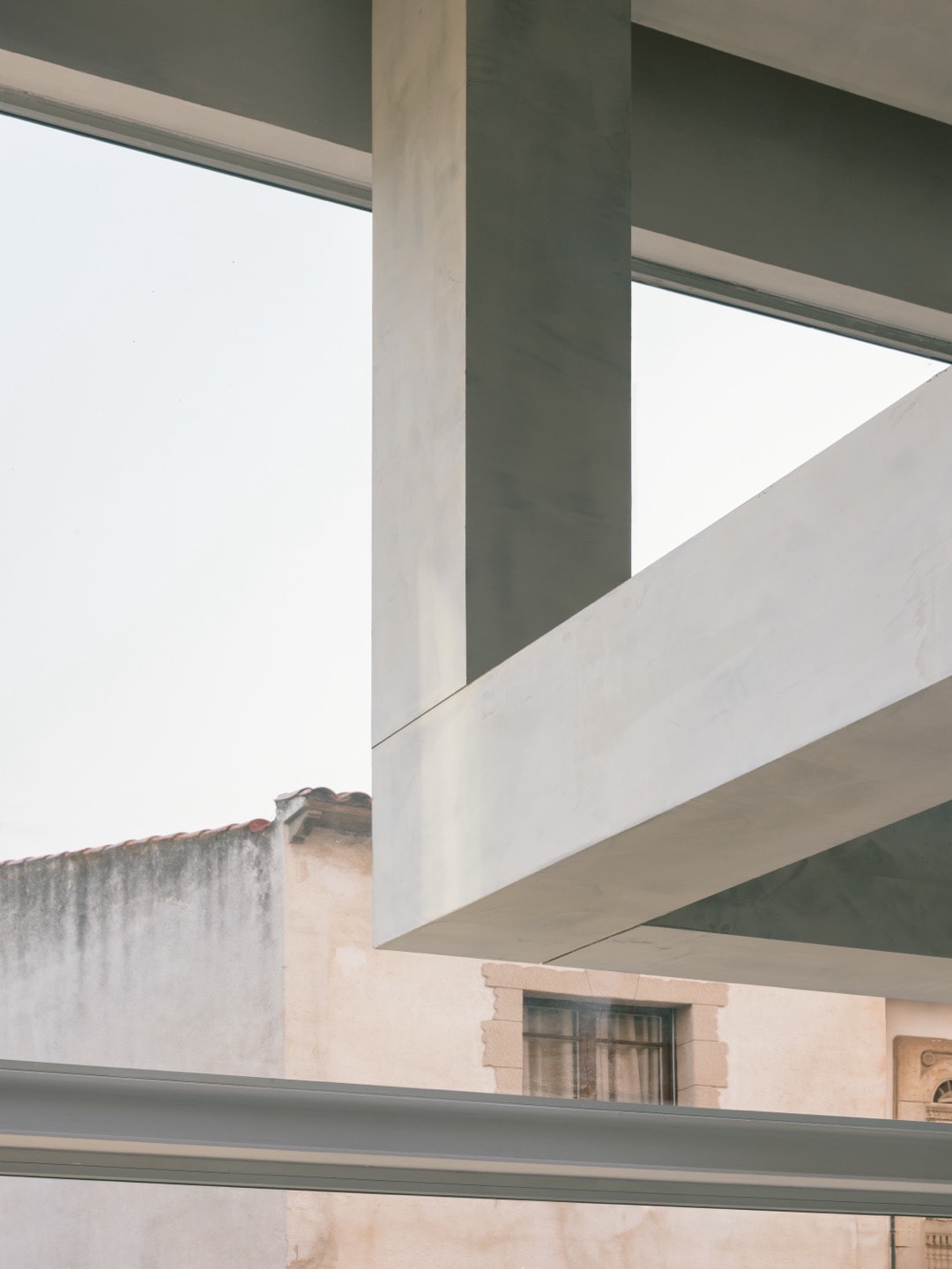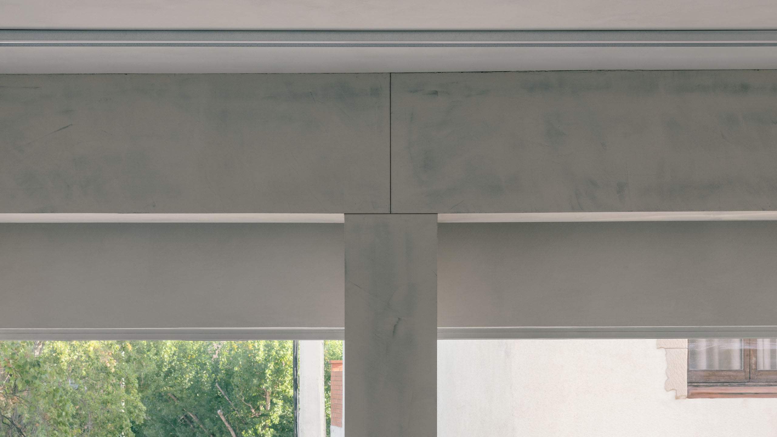 De este modo, el espacio, distribuido en dos plantas, es colonizado por un sistema de pórticos que se adapta a la geometría del local. Su orden estructurante cumple una doble función. Por un lado, ordena el espacio y establece una jerarquía que permite dividir programas. Por otro, aporta ese carácter rotundo y geométrico que, unido a su estética, convierte este gesto en una seña de identidad.
