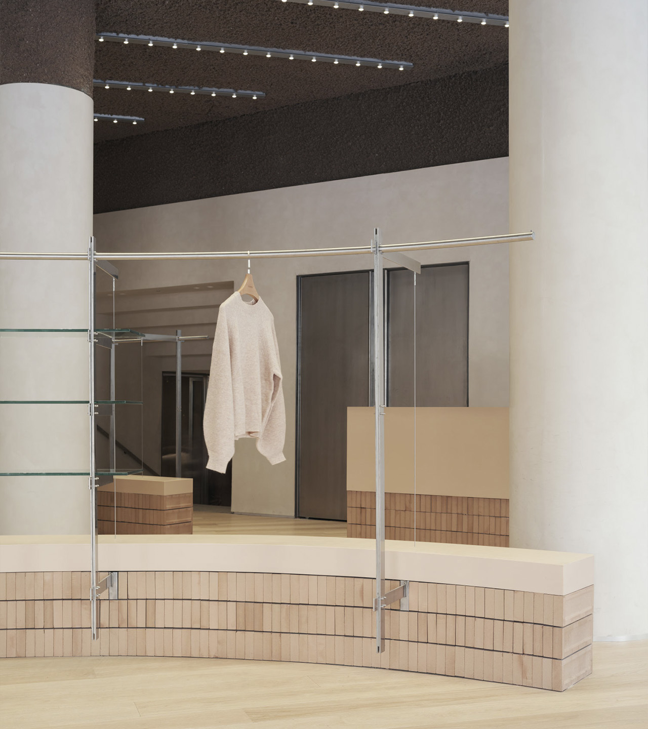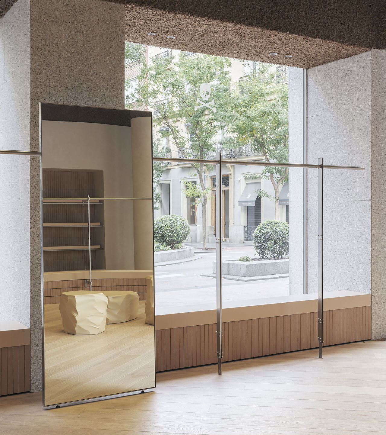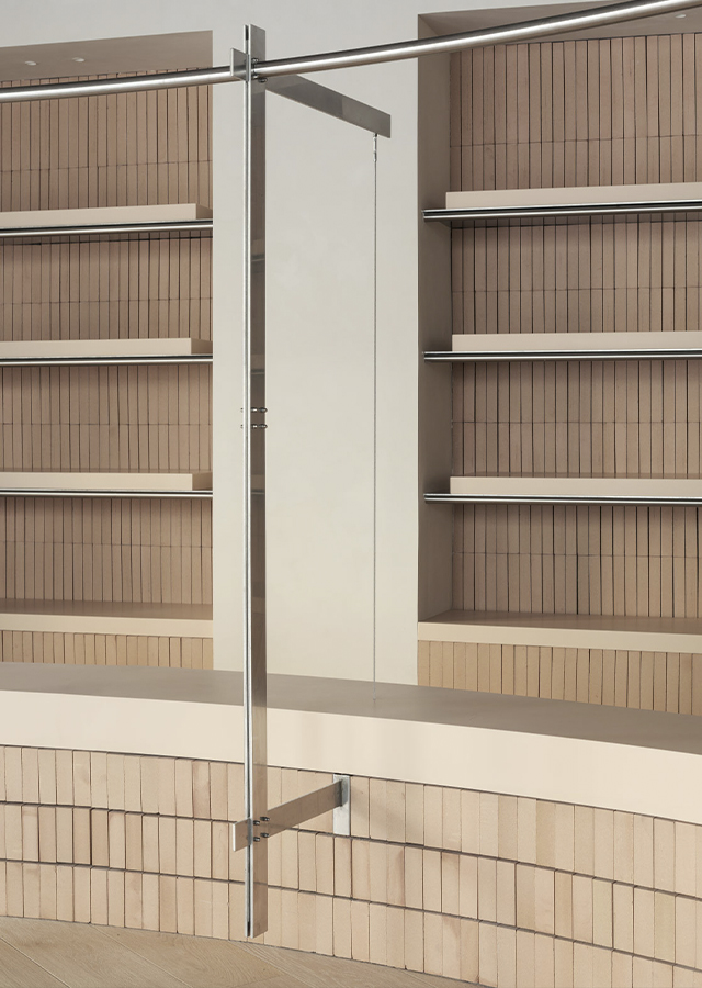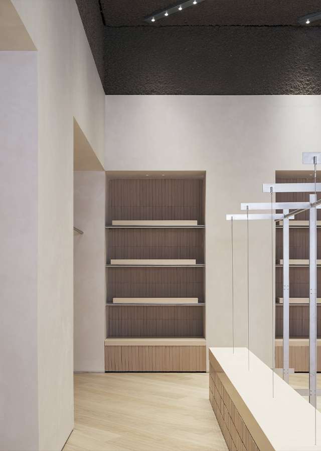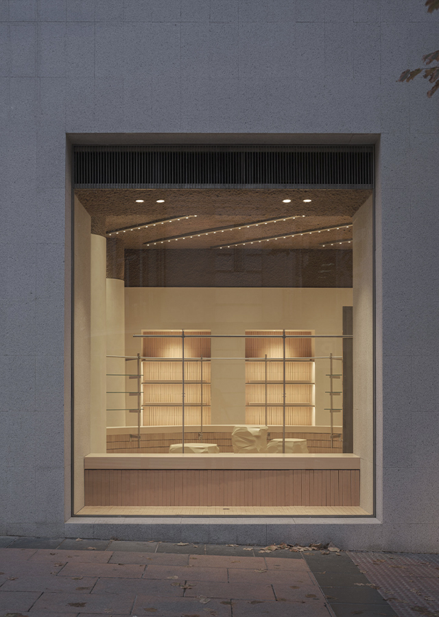 Esta suma de acciones construye un recorrido que pretende embaucar y despertar la atención del viandante. Desde el exterior, se diseñan unos escaparates cuya limpieza y sobriedad contrasta con la expresividad del interior. Una vez dentro, la monumentalidad del espacio sugiere una especie de experiencia inmersiva que conecta con la exposición de prendas. En definitiva, el afán por acentuar la sorpresa recae sobre un diseño que apuesta firmemente por el empleo de soluciones innovadoras y por el cuidado máximo del detalle.